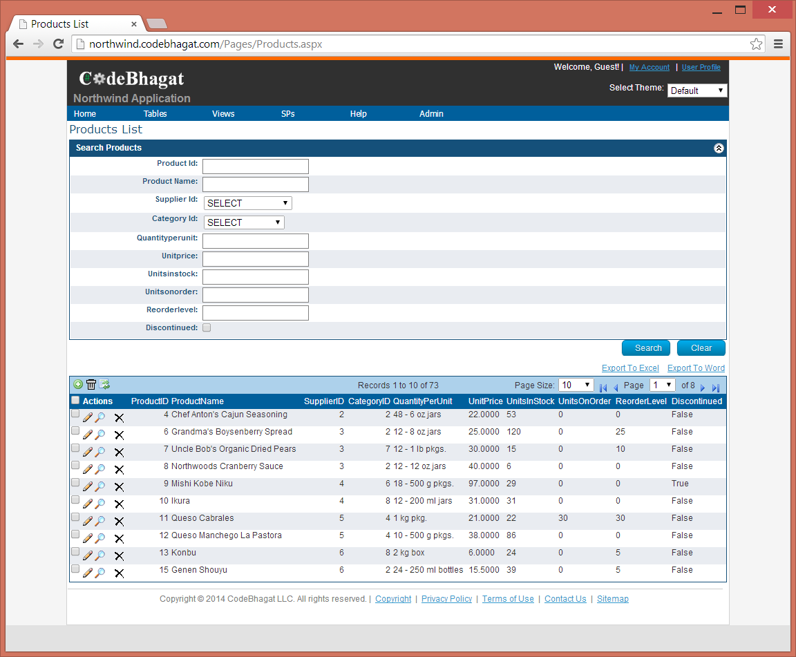 Northwind Sample Application (ASP.NET Web Applicaton)